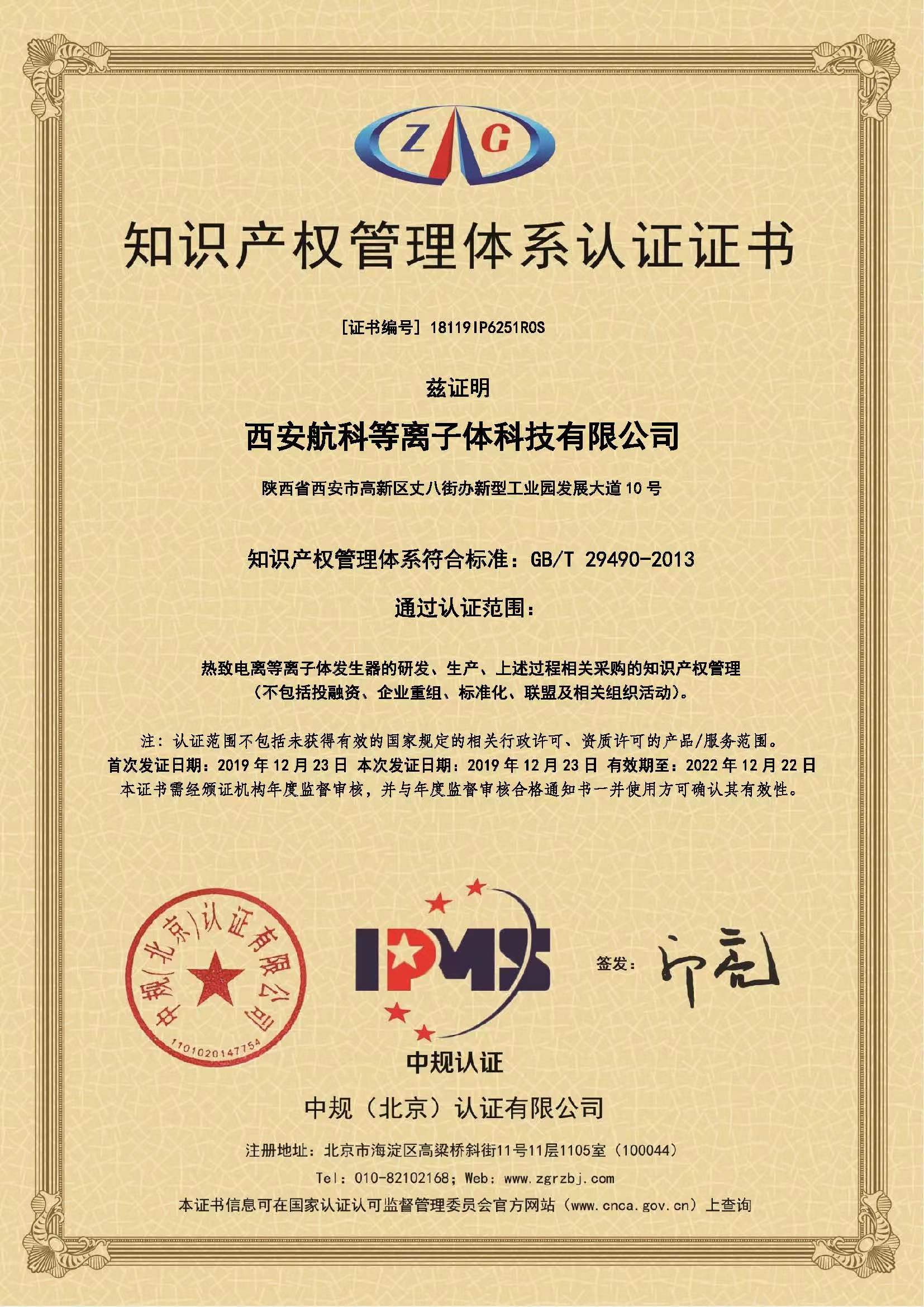 西安航科通過(guò)知識產(chǎn)權管理體系貫標認證_西安航科通過(guò)知識產(chǎn)權管理體系貫標認證__西安航科等離子體科技有限公司